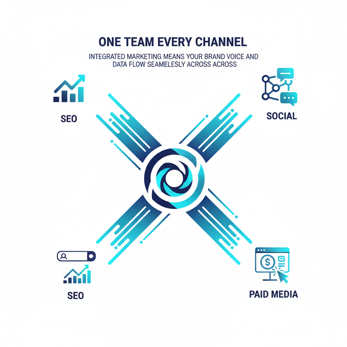 Integrated marketing means your brand voice and data flow seamlessly across SEO, Social, and Paid media.